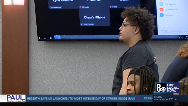 Lincoln Peterson's attorney, Ryan Helmick, makes arguments to Judge Tierra Jones during his sentencing hearing in Las Vegas Aug. 14, 2025.